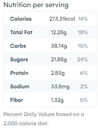 I have provided some nutrition information as a guide. However, the data can vary for a recipe based on many factors such as precision of measurements, ingredients, or the source of nutrition data.